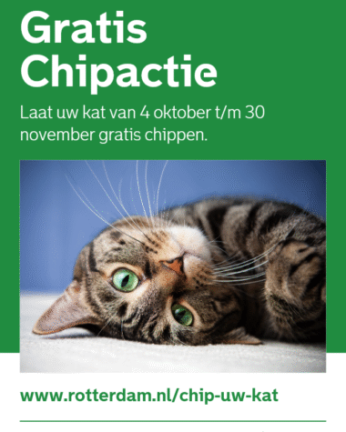 NieuwsUw kat gratis chippen! 12 september 2025145 x bekeken De actie loopt van 4 oktober (Dierendag) tot en met 30 november. In deze periode kunnen Rotterdamse katteneigenaren hun…